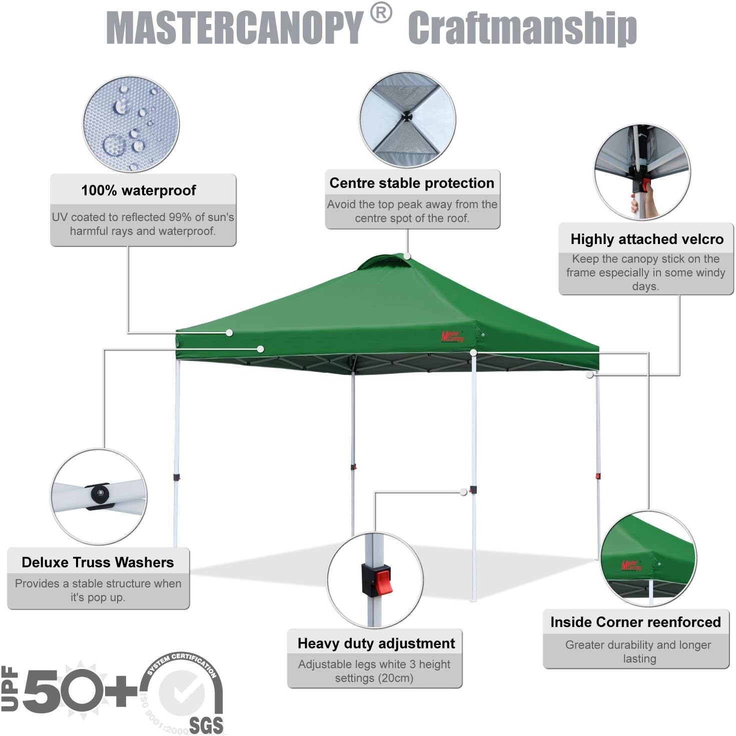 Ajustes de altura mejorados: el ajuste mejorado de la pierna de palanca mantendrá tus dedos libres de pellizcos y es más fácil de desenganchar. Tres ajustes de altura diferentes te permiten elegir la altura que satisfaga tus necesidades. Opciones de altura de pierna recta: Alto 81', Medio 77', Bajo 73.2'. Perfecto para actividades comerciales, camping, festivales, portón trasero, eventos en el patio trasero, etc.
